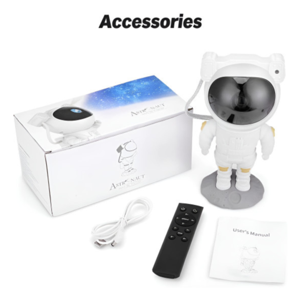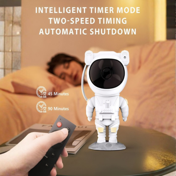 This unique projector boasts a sleek astronaut-themed design with an adjustable head that allows you to direct the projection anywhere you like. Control the settings effortlessly with the included remote control, adjust the timer to suit your needs, and customize the lighting experience to perfectly match your mood.